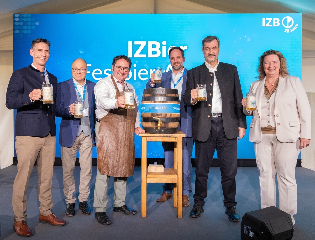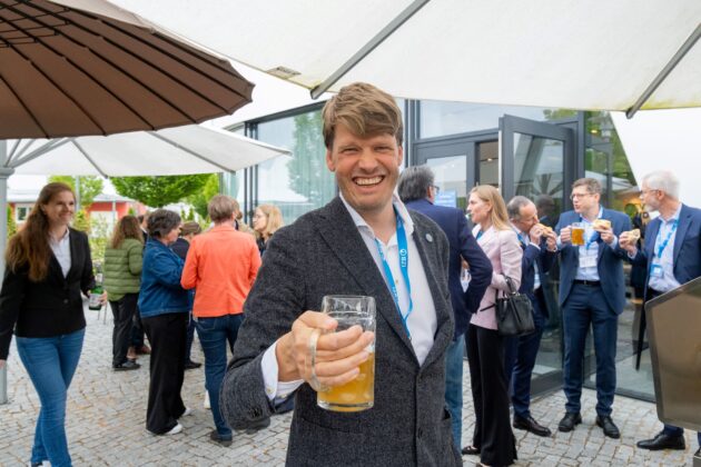 Den feierlichen Ausklang fand der Abend bei angeregtem Networking und einem besonderen symbolischen Genuss: dem „IZBier“, das eigens zum Jubiläum am zweiten IZB-Standort in Weihenstephan gebraut und von Tobias Gotthardt, Staatssekretär im Bayerischen Staatsministerium für Wirtschaft, Landesentwicklung und Energie, angezapft wurde. Es erinnert an die enge Verbindung von Biotechnologie und Braukunst – und daran, wie traditionelle Verfahren die Grundlage für moderne biotechnologische Innovationen bilden.
