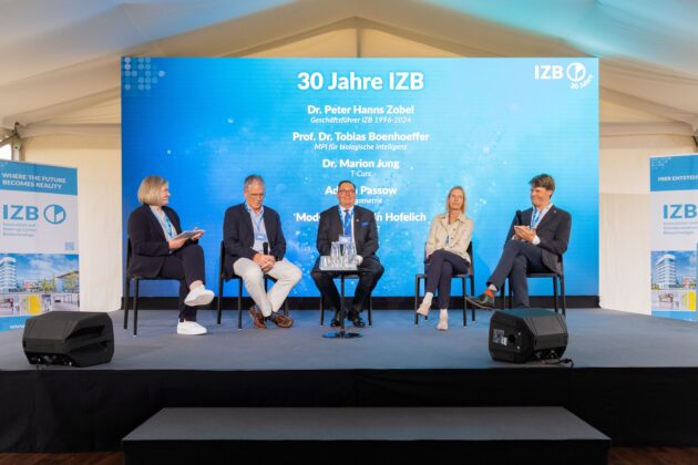 Mit einer großen Feier und spannenden Diskussionen blickte das Innovations- und Gründerzentrum für Biotechnologie (IZB) am 22. Mai 2025 auf 30 Jahre Fortschritt zurück und setzt Impulse für die Zukunft des Biotech-Hub! Wir haben uns gefreut, Teil des Programms gewesen zu sein! Karin Hofelich (Life Science Lead) hat auf dem Event die Podiumsdiskussion „30 Jahre IZB – Rückblick und Perspektiven“, moderiert.